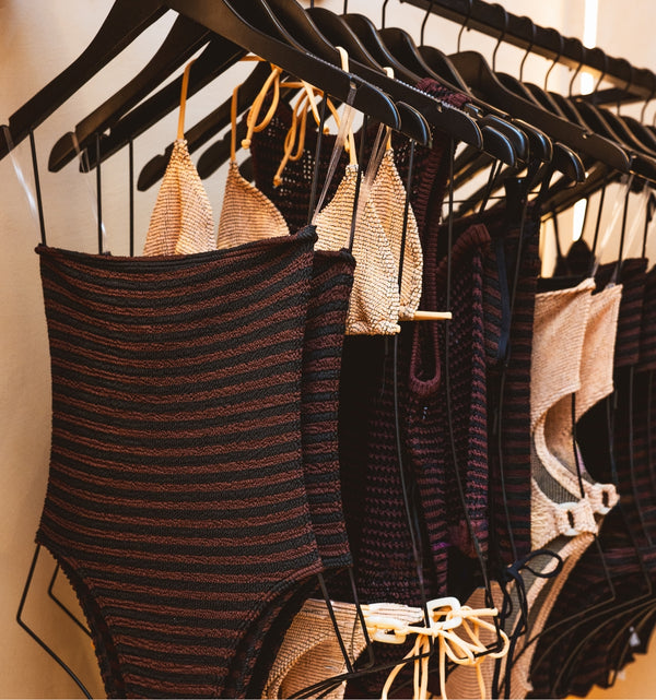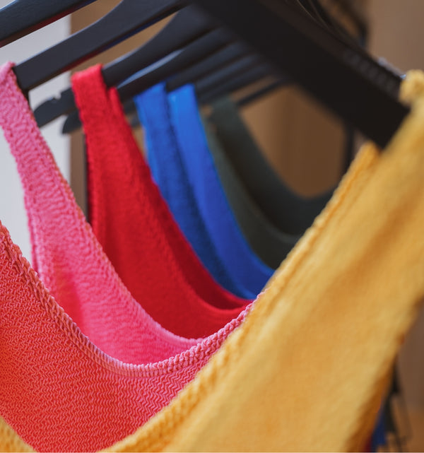 Our signature fabrications in person. Authentic Crinkle™, Bare, and ready-to-wear.