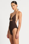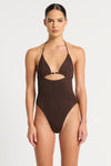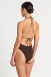 Our swimwear is unsized and our swim fabric generally fits across a size range of XS to LMeet the Beaded Fowler One Piece, a contemporary take on the classic one piece. This style features a beaded cut out keyhole, and a tie-back halter neck with an open back. Handmade in Australia from The Authentic Crinkle™.
